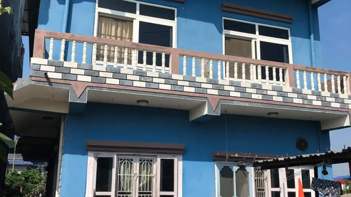 Well-maintained 2-storied house with additional small house at Jagriti Chowk, Bharatpur Mahanagarpalika-12, Chitwan. Built in 2070 B.S. on 1 kattha 7 dhur land, located 0.6 km East from Malpot Office. Features 5 bedrooms total, parking for 1 car and 3-4 bikes, with 8 meter pitched road access. West-facing property suitable for residential purpose. Exchange option available with land plus cash.