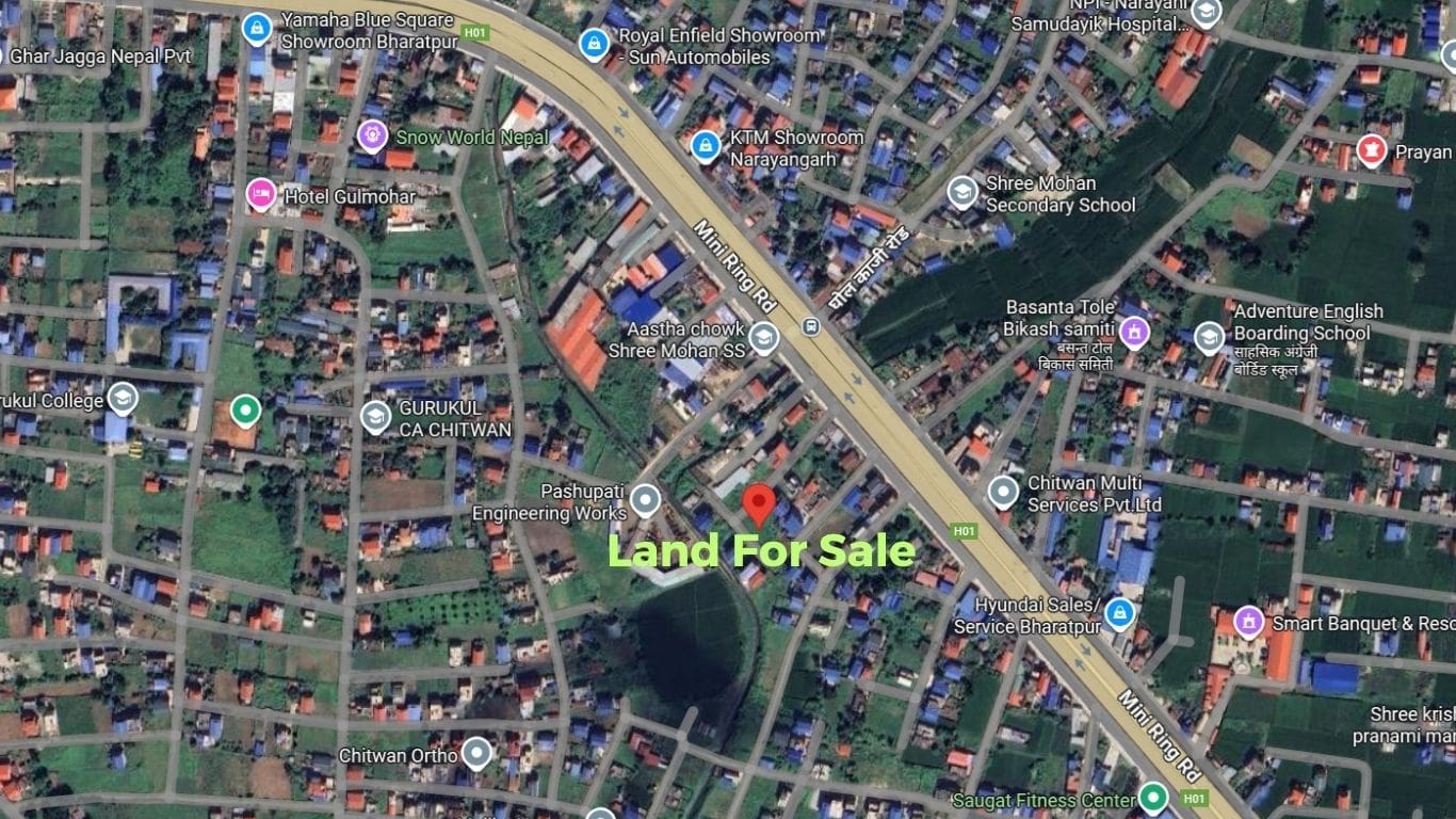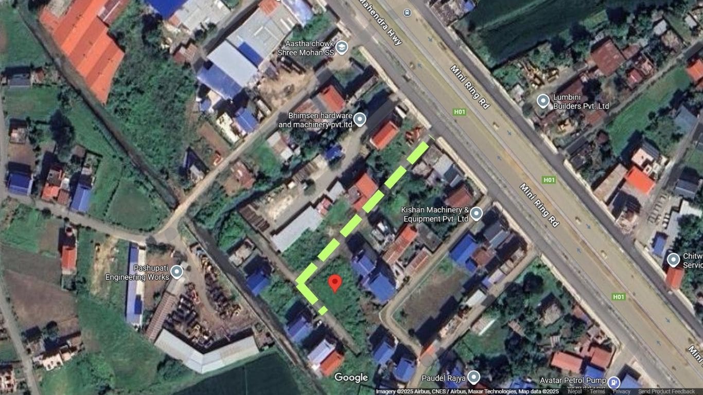 This 8.75 Dhur south-facing land is located at the border of Aastha Chowk and Basanta Chowk, one of Bharatpur’s most convenient and fast-developing areas.